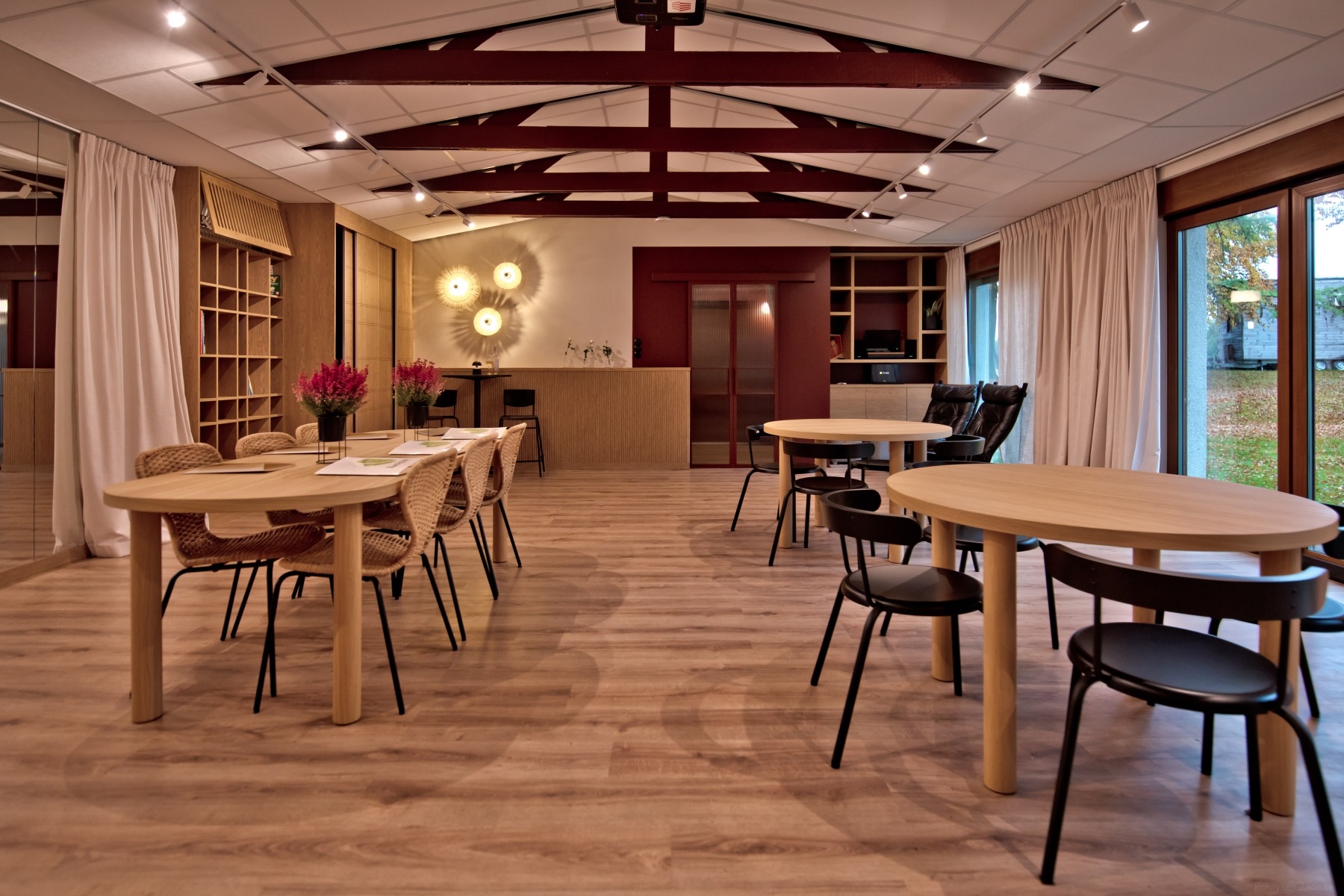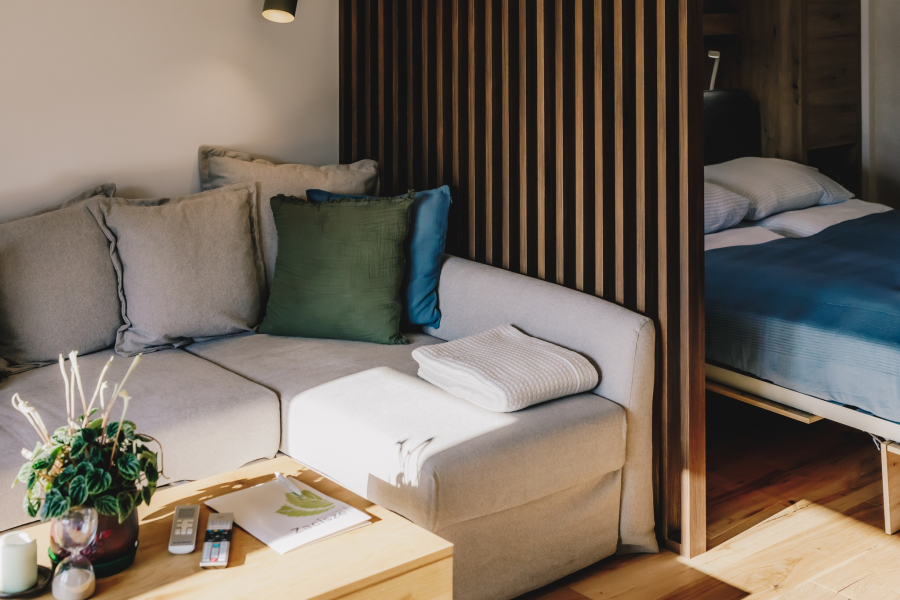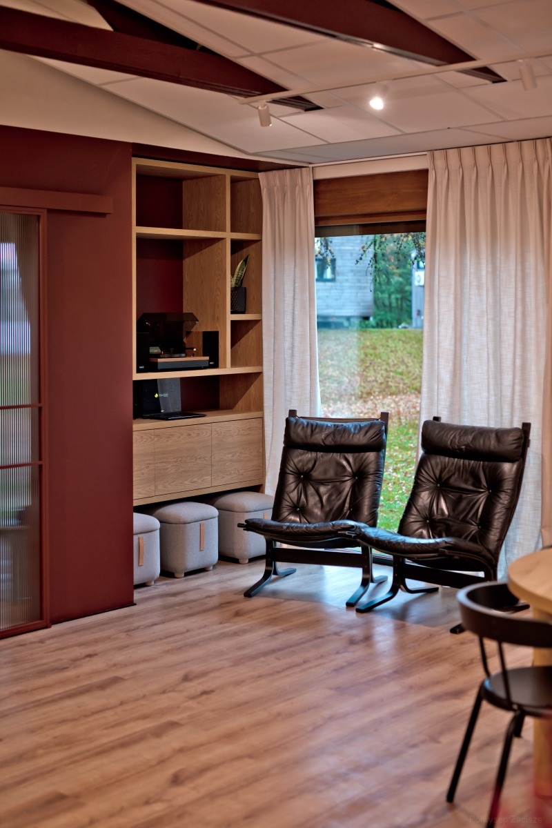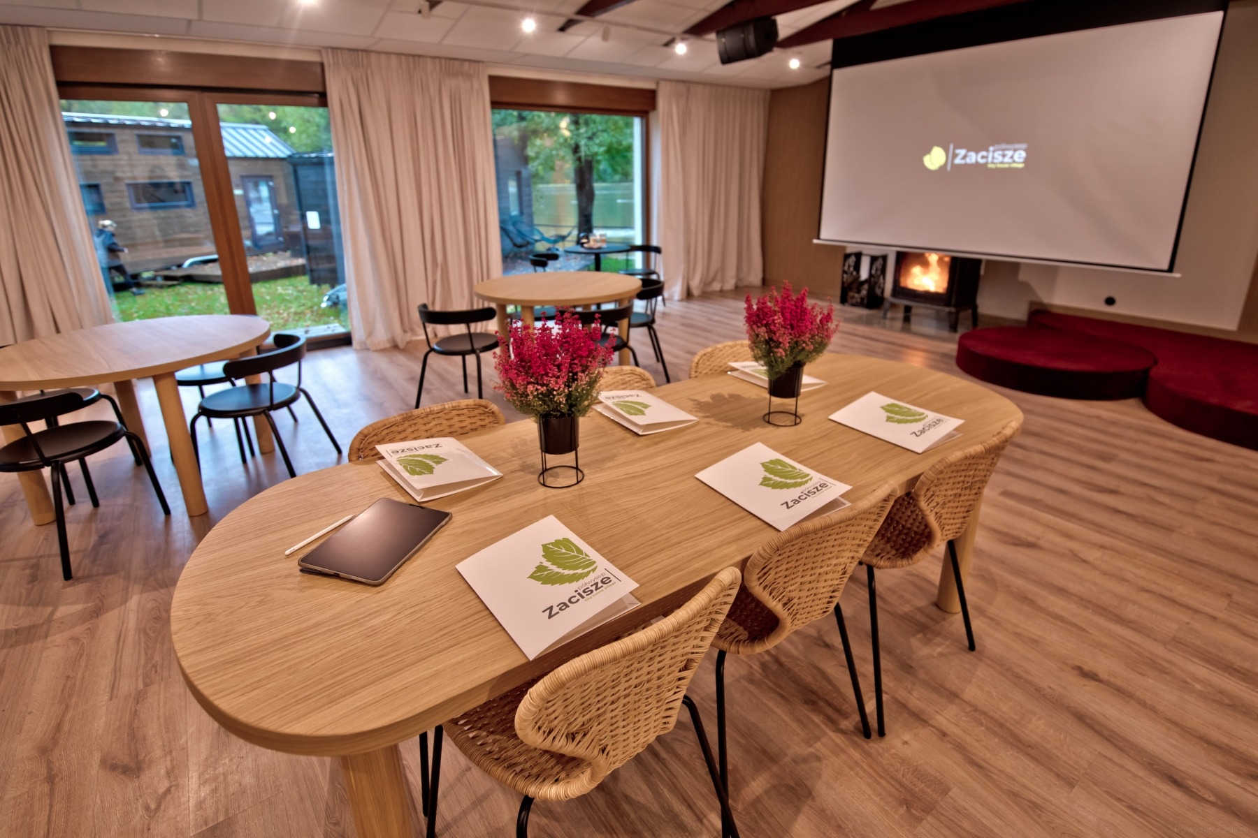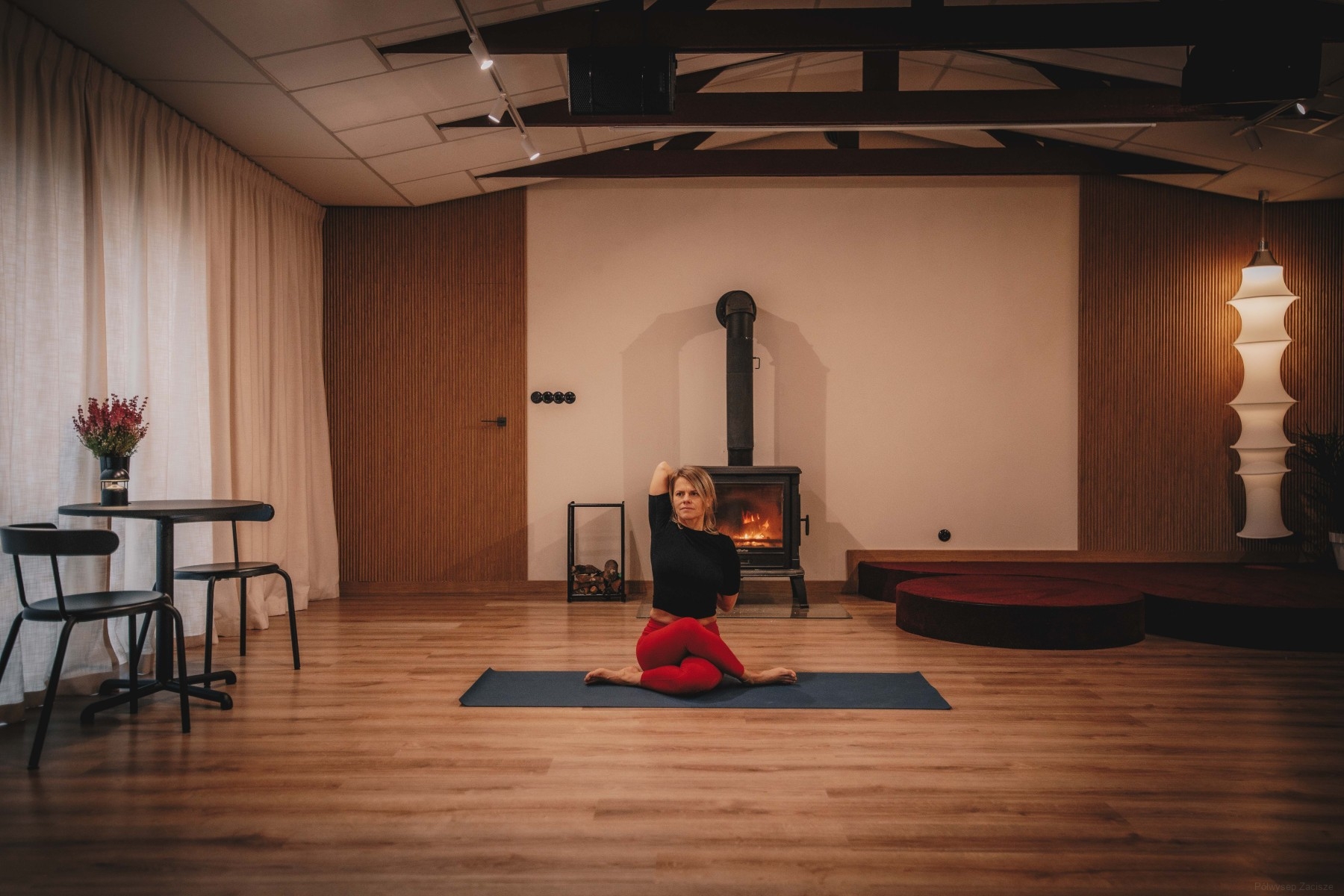 Na terenie obiektu posiadamy kameralną sale kominkową. Jest to idealne miejsce zarówno do pracy jak i odpoczynku. W tym miejscu poćwiczycie jogę, obejrzycie film na dużym ekranie lub napijecie się pysznej kawy przy muzyce z gramofonu.